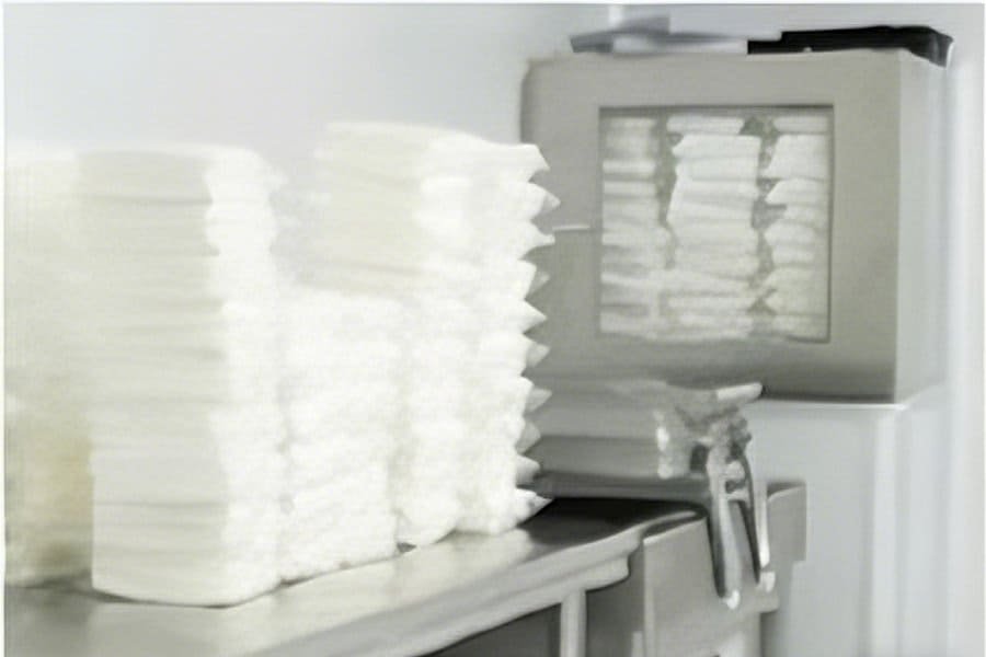 Wipes are checked to remove defects, then folded and packed following set specifications to maintain consistency in size and appearance.